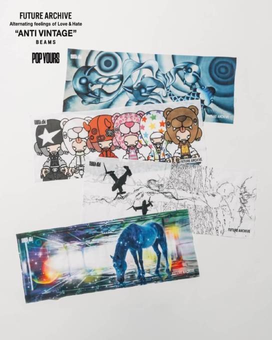 さらに撮影後、画面上で「当たり」が表示された来場者には、〈FUTURE ARCHIVE〉と親交の深いアーティストたちがデザインを手がけた「会場限定特製手ぬぐい」をプレゼントする。※手ぬぐいは数量限定