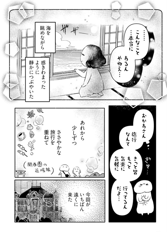 観光の楽しさと、家族を知り直す温かさが胸に残る、優しくて少し切ない旅行コミックエッセイです。じんわり心に沁みます。