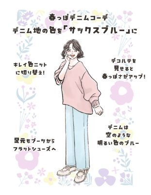 ◆デニムで春っぽさをだす、オシャレで手っ取り早い方法って?