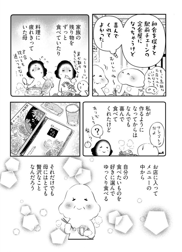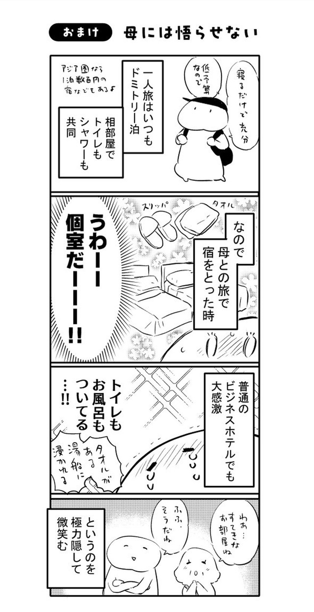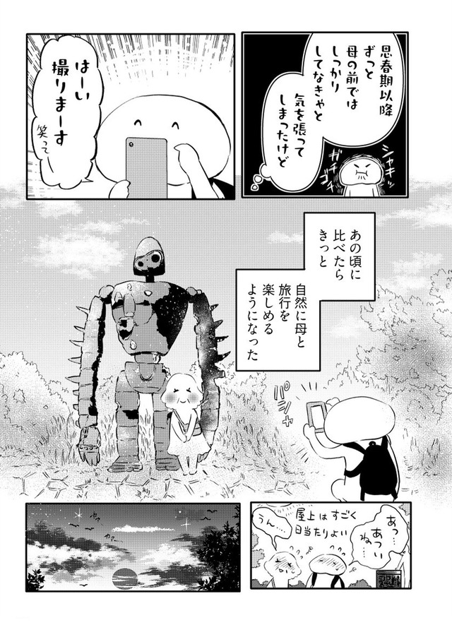 年間に何度も旅する漫画家の“私”が、旅慣れない母を連れて向かったのは関東への二人旅。壊れたサンダルで現れる母に始まり、行く先々でハプニング続出。