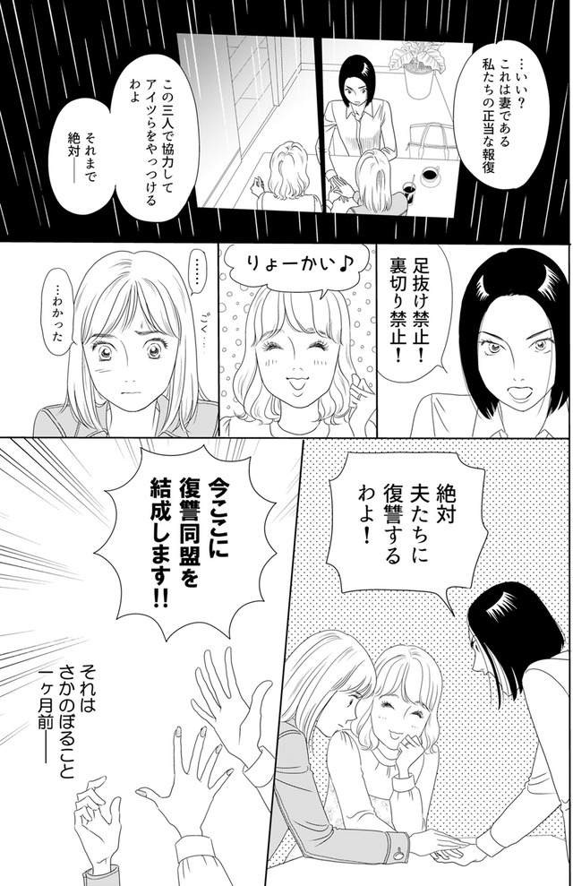 結婚3年目、主婦の奈津子(30歳)は傲慢な夫・義隆の顔色をうかがう日々に心をすり減らしていた。自立する自信もなく耐えるだけの人生。そんな彼女の静かな日常は、夫のあまりに生々しい裏切りによって音を立てて崩れ去ってしまった。絶望の淵で彼女を待っていたのは、同じ痛みを知る友人からの「復讐同盟」への誘い。失った自尊心を取り戻すため、3人のサレ妻たちによる鮮やかな反撃が、今幕を開ける。2026年4月1日(水)深夜1時~ 水ドラ25(テレ東系)にて、同名のドラマが放送スタート!不倫をした夫への復讐を果たすため、水崎綾女、篠田麻里子、矢吹奈子の3人が熱演。