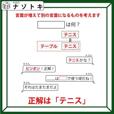 そう考えると黒枠の答えもわかりますね。正解は「テニス」でした。