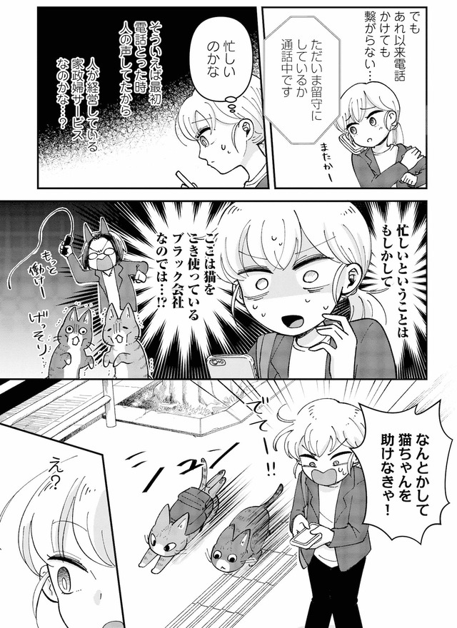 猫の後を追ってたどり着いた先は“猫屋敷”!? 玄関を覗くと現れた人物とは…?【家政婦よんだら猫がきた #15】