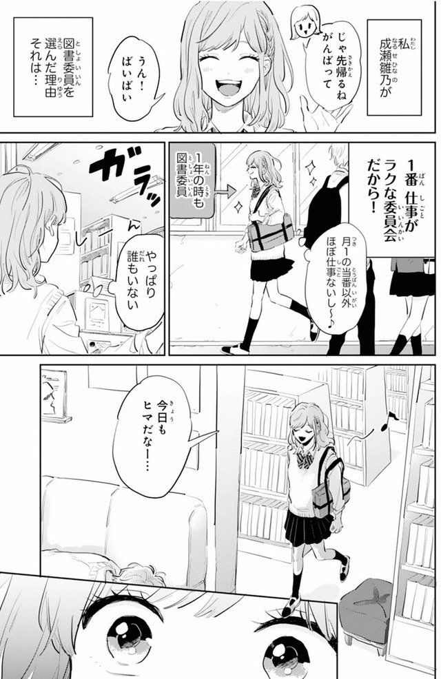 図書委員の雛乃は、図書室で眠る“超モテ男子”榛名くんを見つけてしまう。
