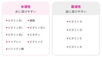 なかでも、子どもに不足しがちなのはビタミンDです。ビタミンは大きく分けて「脂溶性」と「水溶性」の2種類があり、それぞれに特徴があります。水溶性ビタミン(ビタミンB群とビタミンC)は、体内に蓄積されにくいため、毎日補う必要があります。