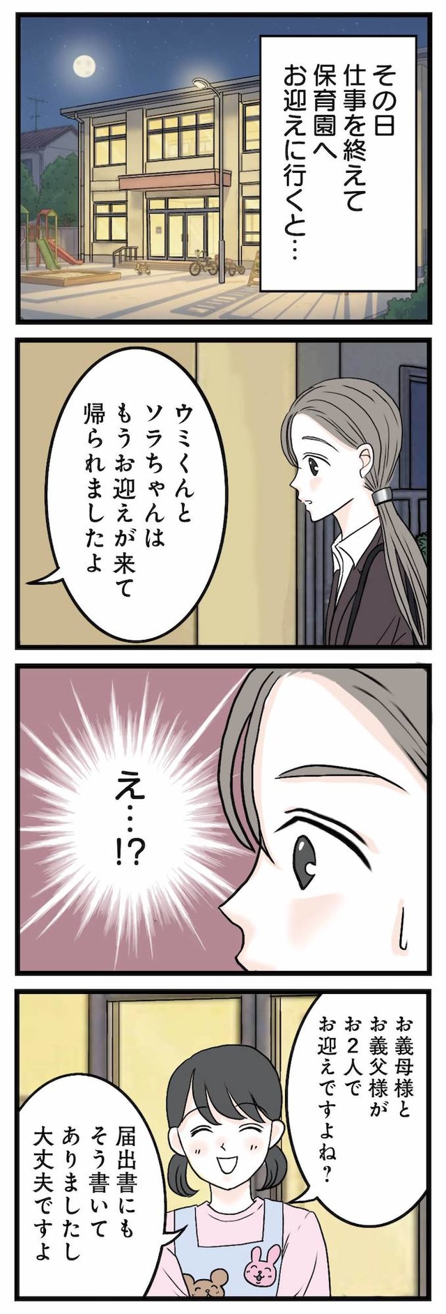 義両親がお迎えから夕飯、お風呂、寝かしつけまで!? ありがたいはずなのに、拭えない違和感が…【結婚したらゴミでした #6】