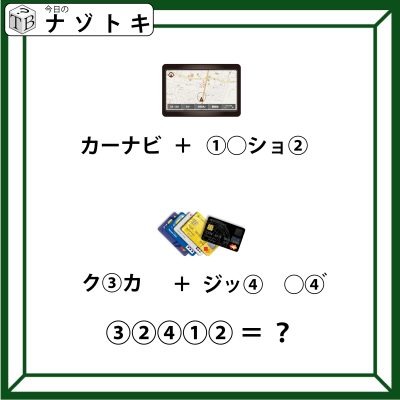 そこで考えるべきなのは「カーナビ」という言葉です。「カーナビ」は「カーナビゲーション」を略した言葉です。右の見えている文字から推測すると略された文字が右には書かれていそうです。