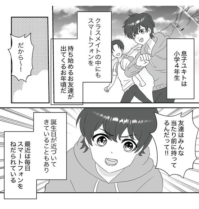 息子からスマホが欲しいとねだられて、両親は5つの決まり事を作り息子にも携帯を持たせることに。