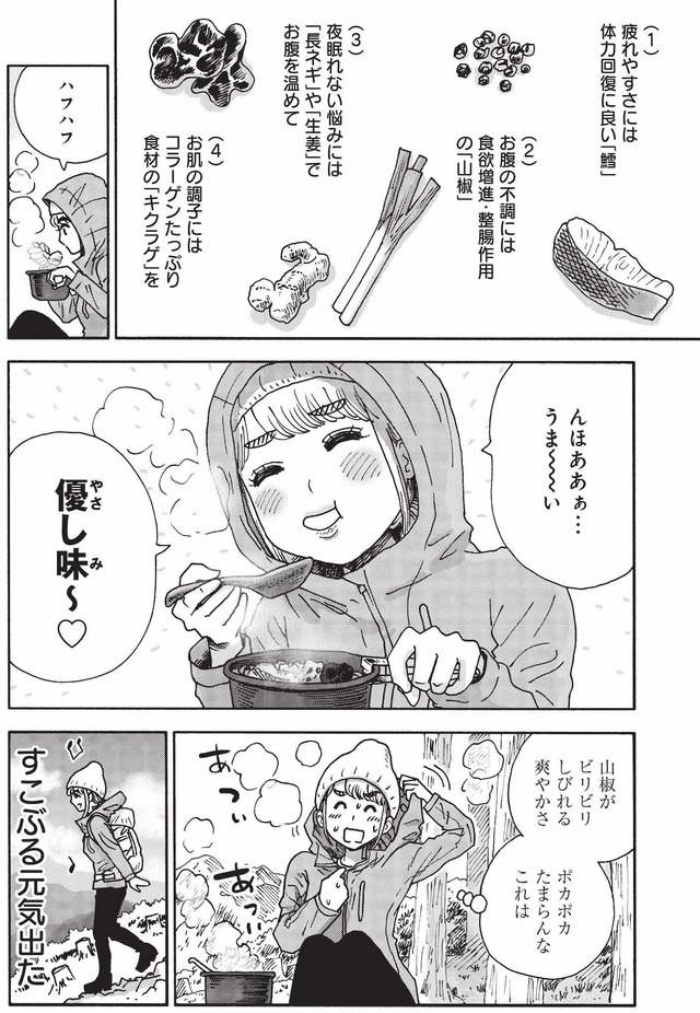 欲張りウィンナー麺、雲上の楽園コーヒーなどなど…。読むとお腹がすいて、山に登りたくなるアウトドア漫画