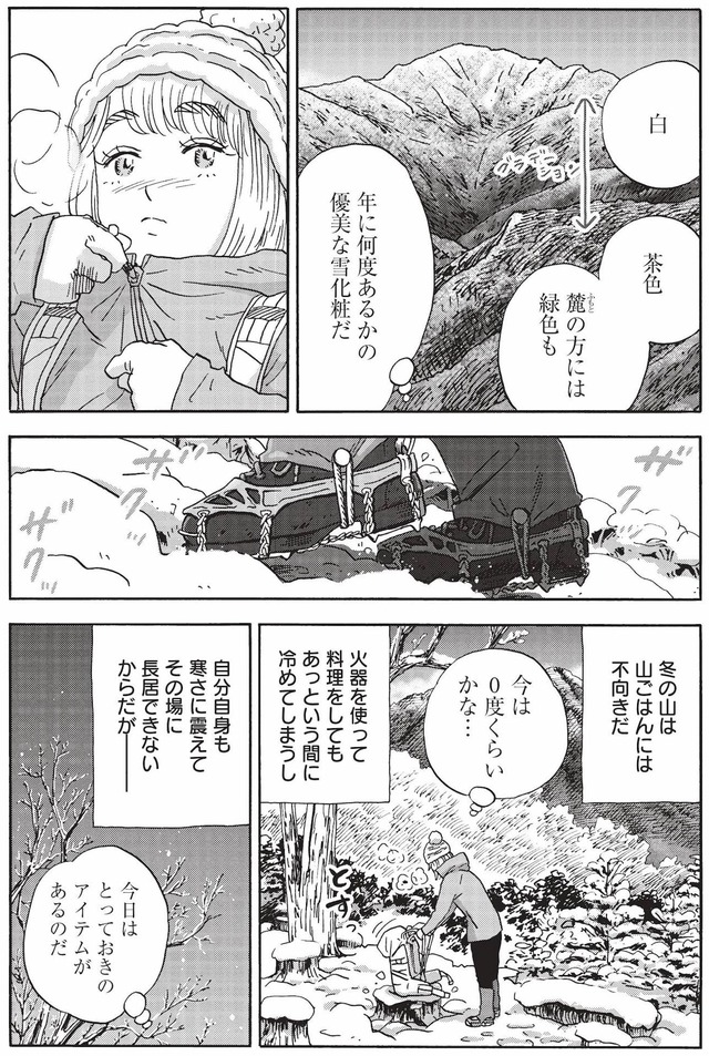 欲張りウィンナー麺、雲上の楽園コーヒーなどなど…。読むとお腹がすいて、山に登りたくなるアウトドア漫画