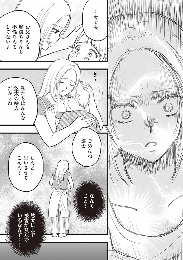 息子も学校で「不倫の子」と心ない言葉を浴びせられ、家庭は崩壊寸前に――。真実を突き止めるため、彼女は動き出す。