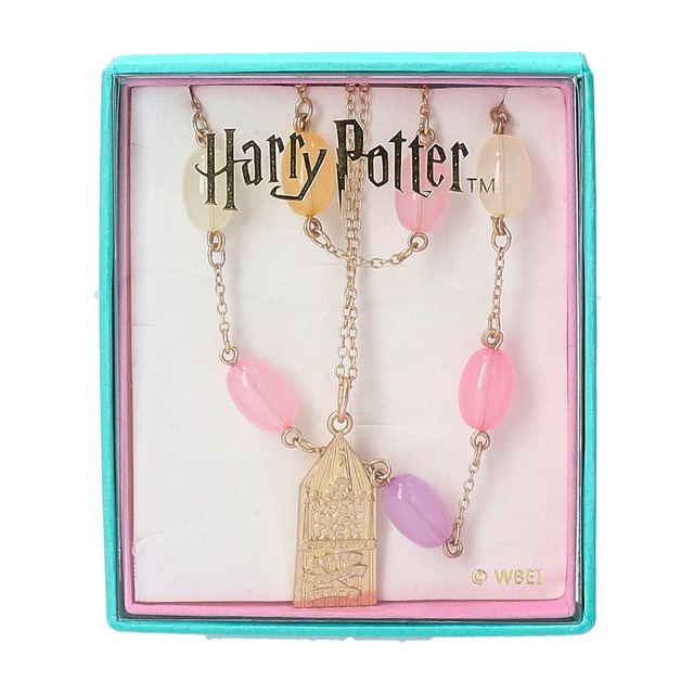 蛙チョコレートやバーティー・ボッツの百味ビーンズ、爆発ボンボンなど「ハニーデュークス」で販売されている定番のお菓子のモチーフを詰め込んだポーチ。振ったり傾けたりすることでモチーフ同士がシャカシャカと音を立て、ビーズやラメがキラキラと輝く。リップや絆創膏、薬などを収納可能なサイズ感で、中身が見えるクリア仕様だ。【ハリー・ポッター バーティー・ボッツの百味ビーンズ ネックレスセット】