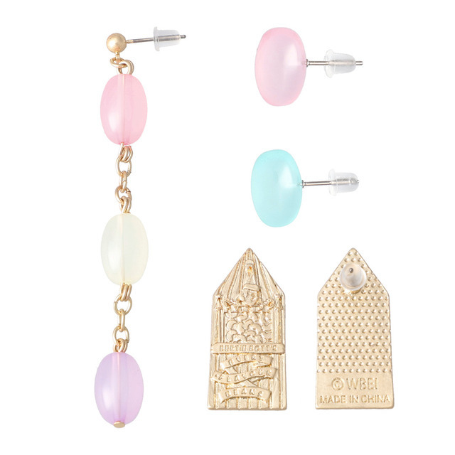 バーティー・ボッツの百味ビーンズのパッケージデザインを落とし込んだプレートネックレスと、色とりどりのビーンズを再現したポップなネックレスのセットアイテム。コーディネートに合わせて選んだり、重ね付けしたり、アジャスターで長さを変更したりと多様な楽しみ方ができる。友人やパートナーとおそろいで付けるのもおすすめだ。【ハリー・ポッター バーティー・ボッツの百味ビーンズ ピアスセット】