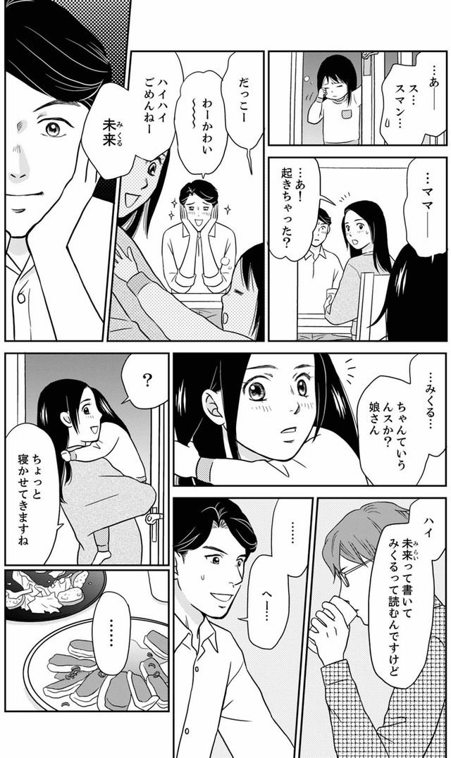 夫の過去の恋バナで盛り上がる! 「未来(みるく)」娘の名前を聞いた途端、夫の友人が固まる…【右手に指輪をする夫 #2】 全 1 枚 拡大写真