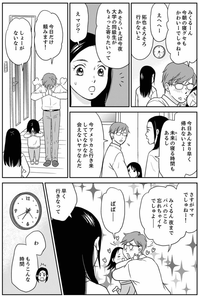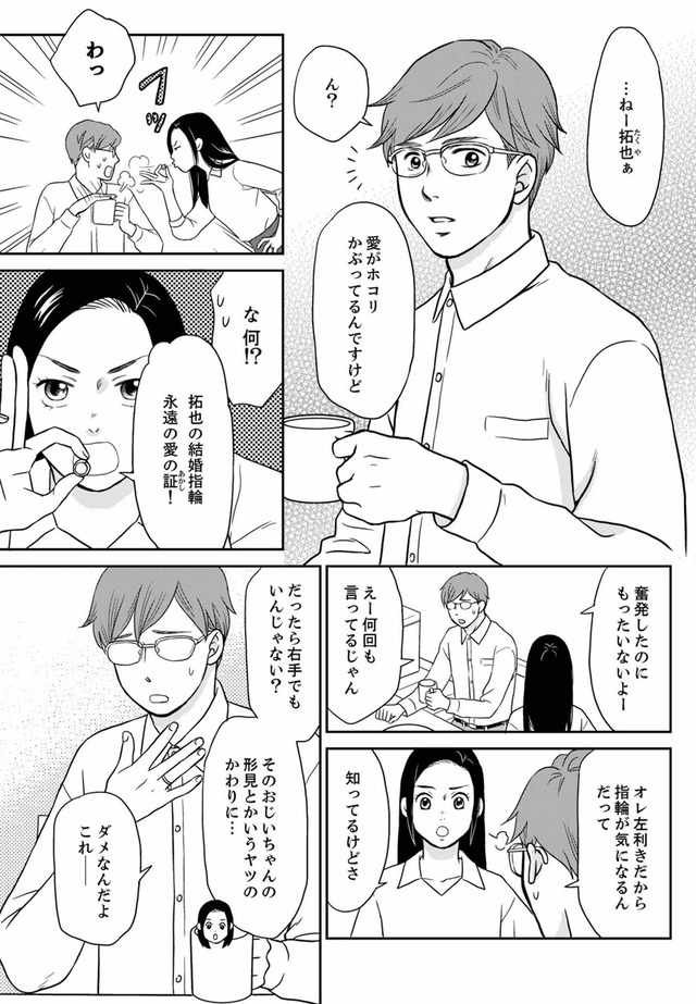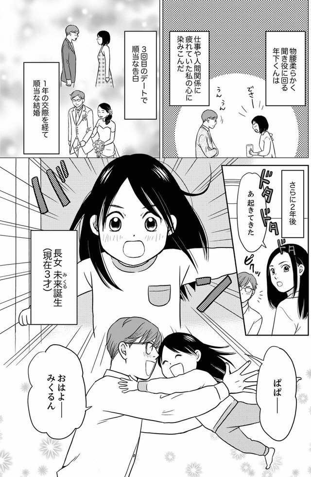 優しい夫と3歳の娘を持つ爽子は、慌ただしくも幸せな毎日を送っていた。そんなある日、夫が元カノの未来(みるく)に書いたラブレターを見つけてしまう。「娘に元カノの名前を付けたの…!?」夫の秘密の秘密を知ってしまい、夫の背後に見え隠れする女性の影を感じる爽子。娘と夫に近づく女の正体は身近にいた意外な人物だった…!?※本記事は、樹ユウマ 著の電子書籍『右手に指輪をする夫』から一部抜粋・編集しました。******