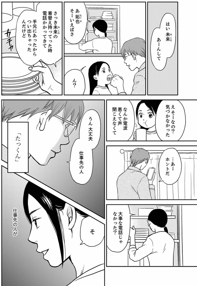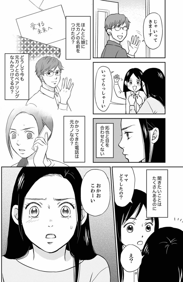 優しい夫と3歳の娘を持つ爽子は、慌ただしくも幸せな毎日を送っていた。そんなある日、夫が元カノの未来(みるく)に書いたラブレターを見つけてしまう。「娘に元カノの名前を付けたの…!?」夫の秘密の秘密を知ってしまい、夫の背後に見え隠れする女性の影を感じる爽子。娘と夫に近づく女の正体は身近にいた意外な人物だった…!?※本記事は、樹ユウマ 著の電子書籍『右手に指輪をする夫』から一部抜粋・編集しました。******