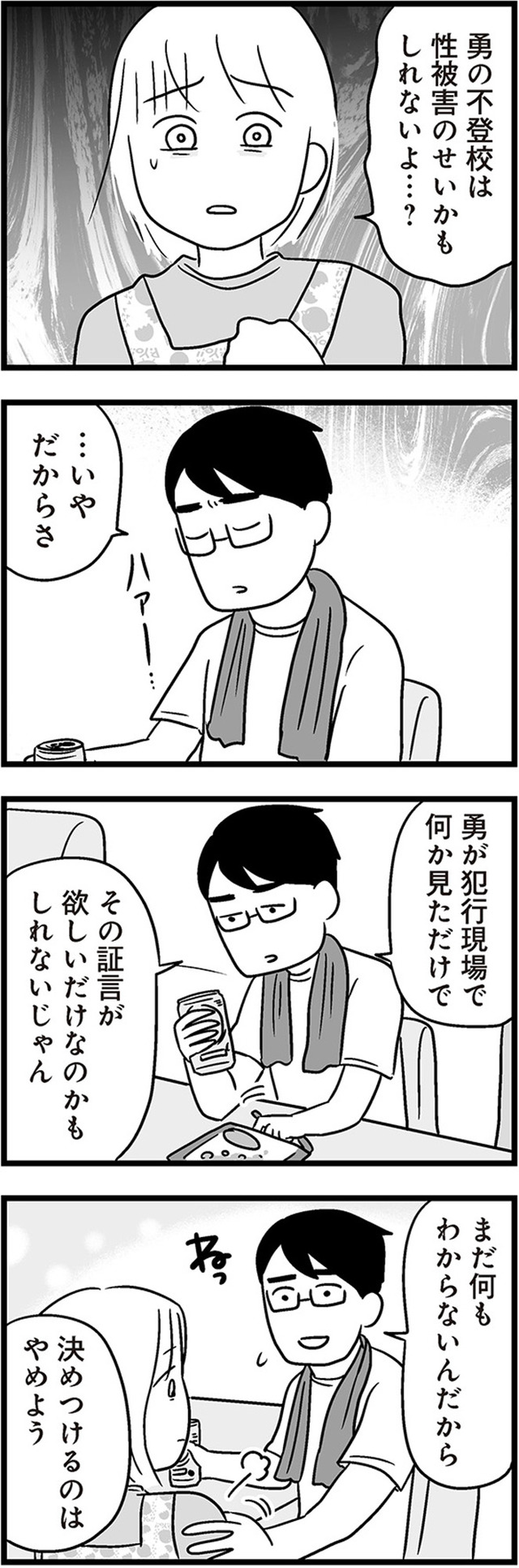 ※本作品は漫画・あらい ぴろよ、監修・斉藤 章佳、取材協力・飛田 桂著の書籍『性被害のせいで、息子が不登校になりました』から一部抜粋・編集しました。