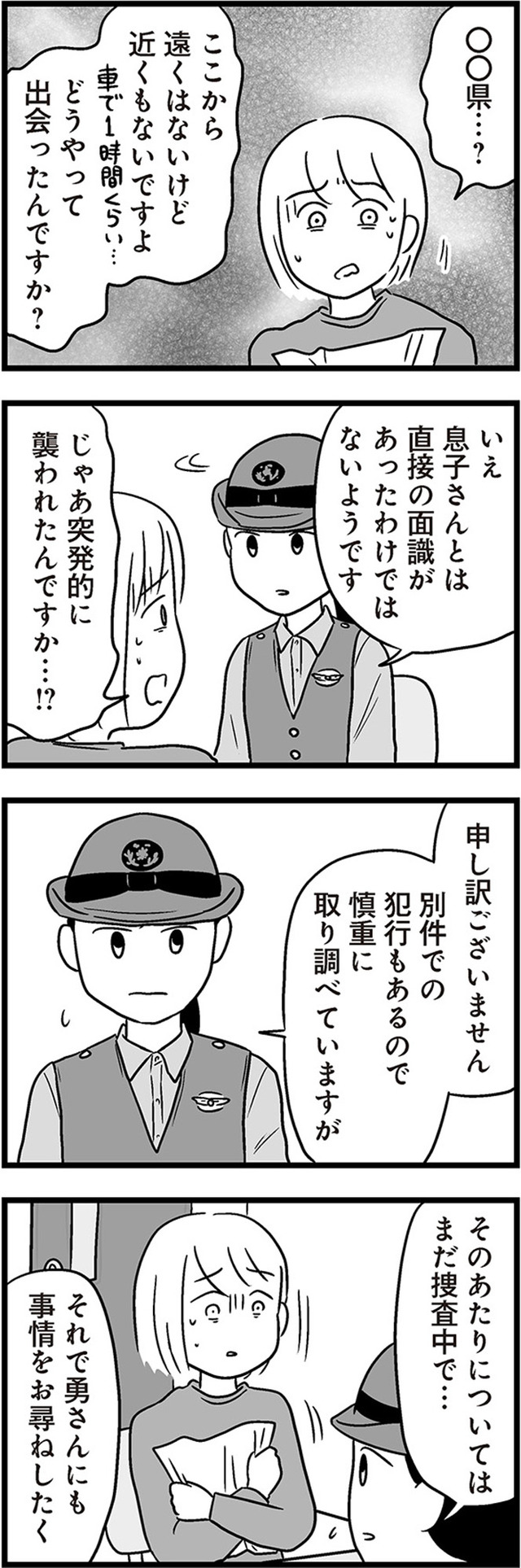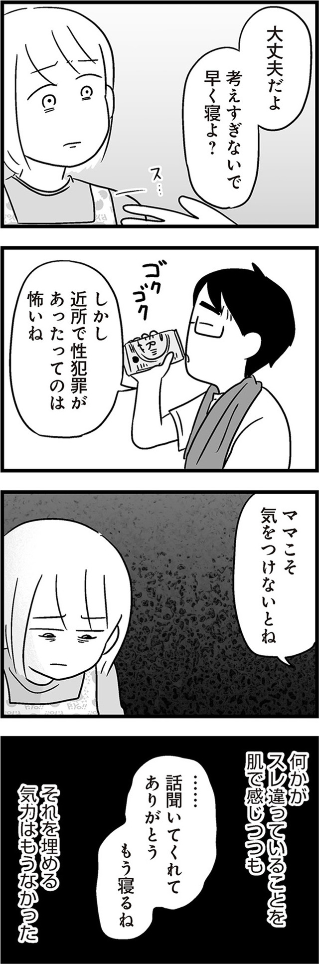 そんなある日、警察から「近所で起きた性犯罪事件に関係している可能性がある」と1本の電話が入り母親は事情徴収に向かう。