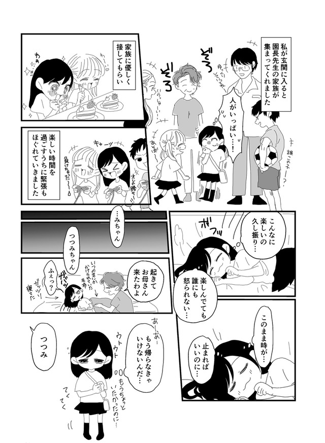 華やかな服装の母親と一緒に暮らすことになったつつみに待っていたのは、母親からの暴言や体罰、ネグレクトを受ける日々だった。