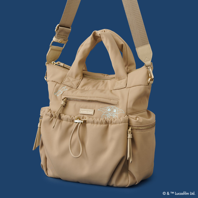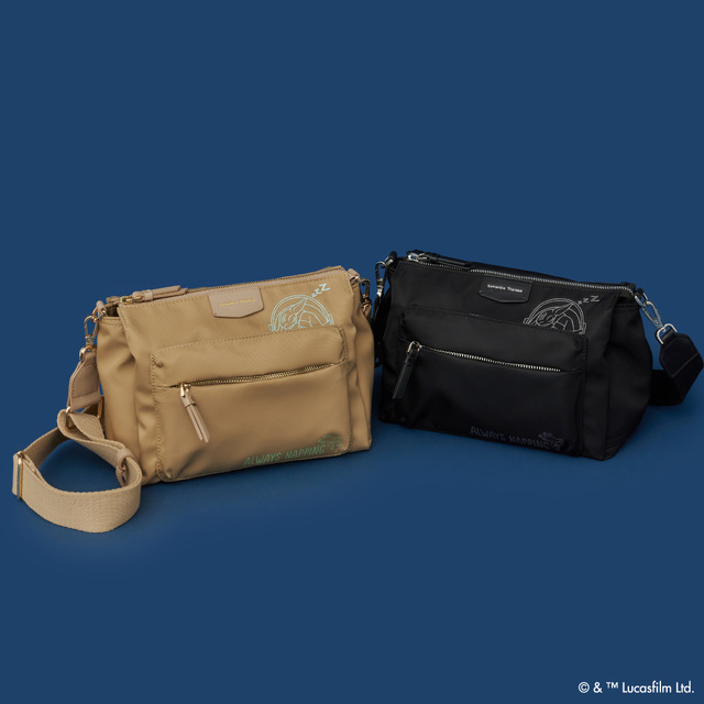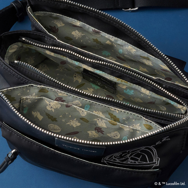 マンダロリアンとグローグーをイメージした、ブラックとベージュ2色展開のショルダーバッグは、3層式分けて収納できるのがポイント。