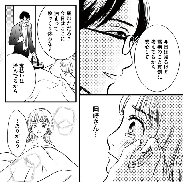 新卒で入社した会社で、上司である岡崎に好意を抱いた雪奈。彼に家庭があると知り一度は思いを断ち切ろうと決意するが、彼がこぼした「妻に会う前に君に出会っていたら…」という言葉に心が大きく揺れ動く。やがて禁断の関係が始まり、止められない思いが雪奈を泥沼へと引きずり込んでいく――。※本記事は原作・リアコミ、漫画・megoの書籍『彼の奥さんがシにますように 私の方が愛されてるの』から一部抜粋・編集しました。******