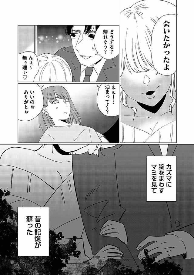同窓会で再会した華やかな幼なじみ・マミは、夫に近づき、やがて関係を持つ。