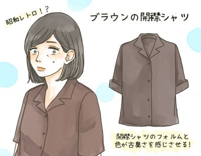 もっとも避けるべきなのは、ベージュやブラウンの開襟シャツを取り入れること。色とデザインで一気に昭和ムードへ引き戻されてしまいそう。