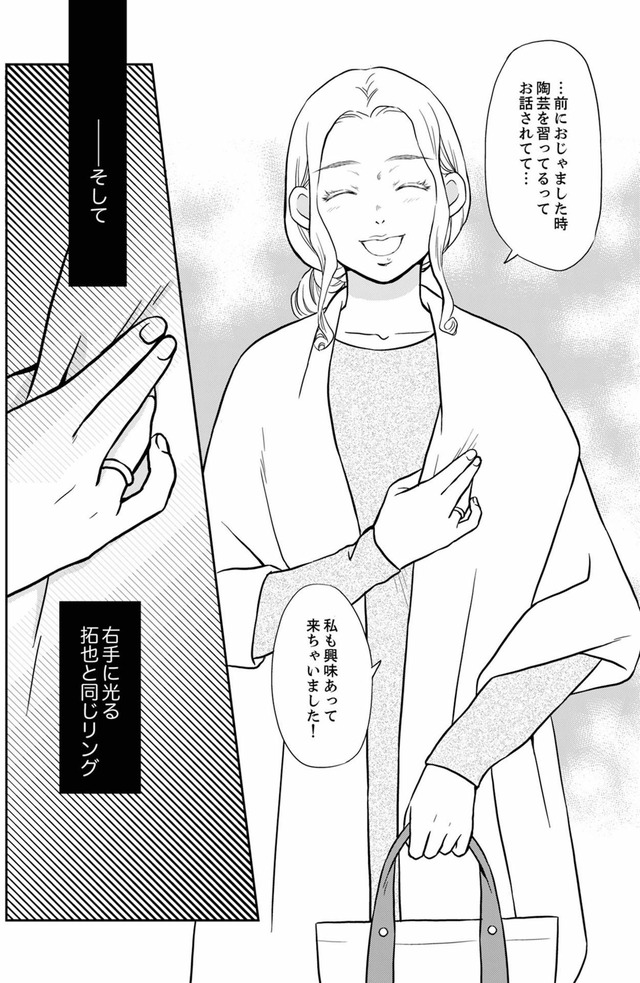 夫と保育園の先生は、同級生で夫の元カノだったことが判明!彼女の右手に光るのは…夫と同じ指輪 【右手に指輪をする夫 #18】 全 1 枚 拡大写真
