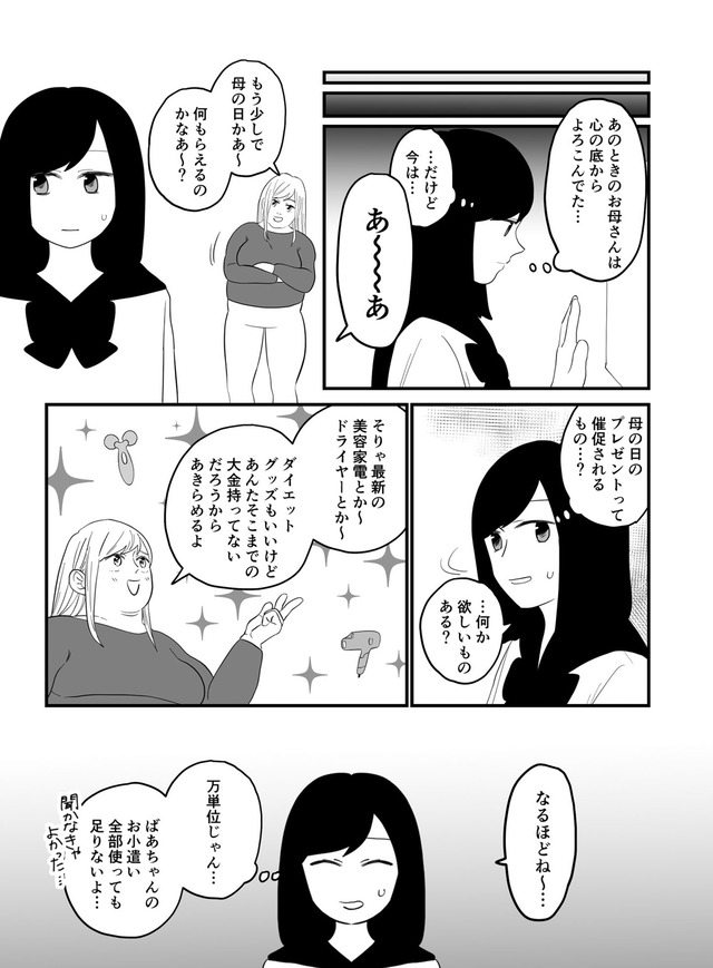 母の日の贈り物を催促する母。ほしい物を尋ねると、高額なものばかりで聞いたことを後悔【毒親に育てられました2 #14】 全 1 枚 拡大写真