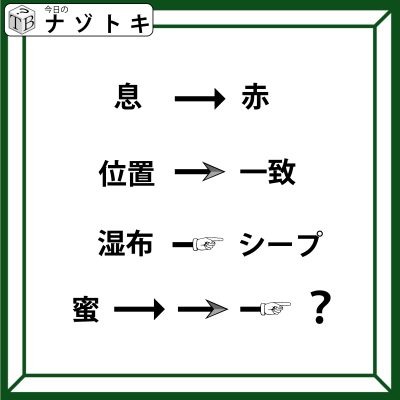 イラストを言語化して答えを考えるナゾトキです。この状況を口に出してみるとわかりやすいかもしれません。