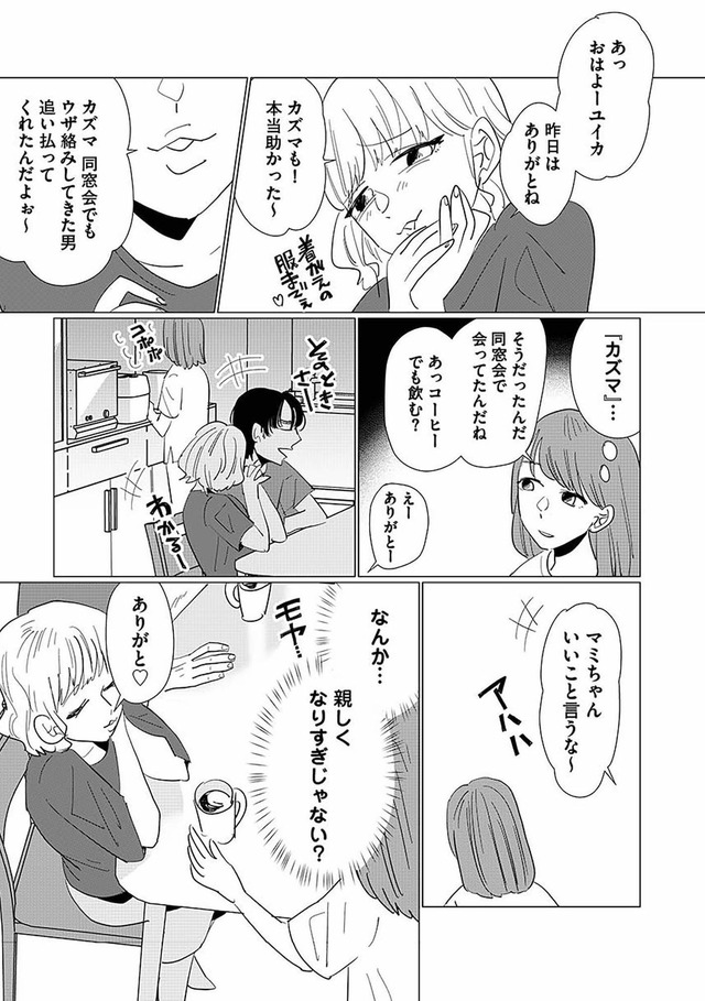 同窓会で再会した華やかな幼なじみ・マミは、夫に近づき、やがて関係を持つ。