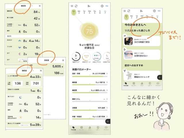 さらに、その日の状態に合わせたアドバイスが届くのもよくて、「どう過ごせばいいのか」がわかる点は、今までとの違いだと感じました。