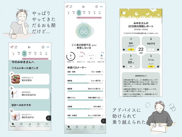 あらかじめ「不調がくるかも」と知っていると、いざ不調に見舞われても納得感があることに気づきました。気持ちも落ち込まず、「あと2日で乗り切れるんだな」とわかるのがとっても心強かったです。