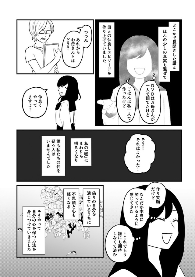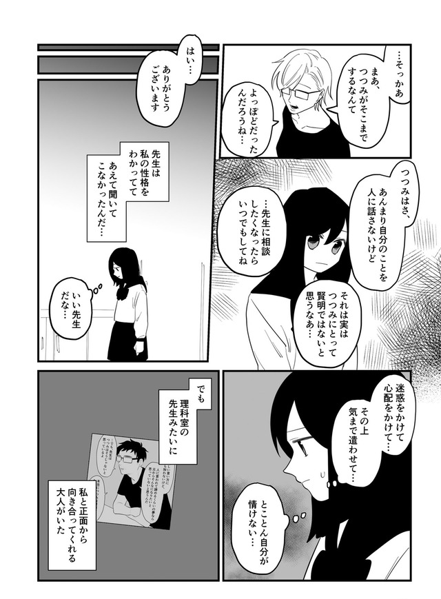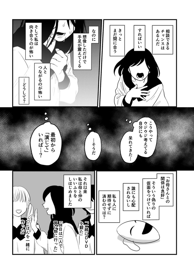 地獄のような生活の中で、つつみは自分を守るために必死にもがき、母親からの支配から抜け出そうと決意する。