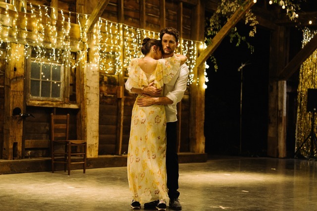 一方、ある出来事をきっかけに、ジョンとともに忍び込んだ結婚式では、柔らかなイエローのフラワードレスに身を包む。シフォン生地の軽やかな一着で、手作り感溢れるガーデンウェディングに溶け込んでいる。纏う色によって異なる表情を見せるルーシーの心の揺らぎを、ドレスがドラマチックに演出している。