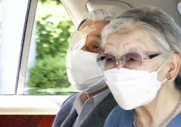 手術を終えて東大病院を後にされる上皇さまと、上皇后美智子さま=25日午前、東京都文京区(代表撮影)