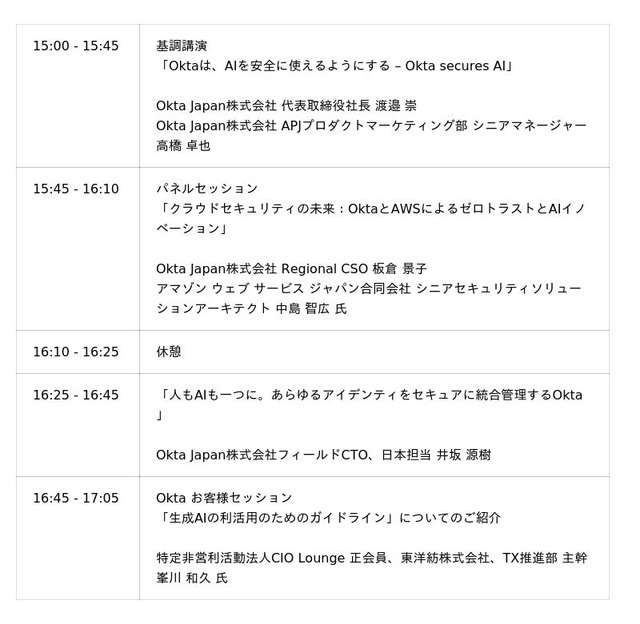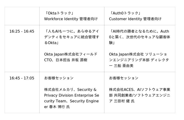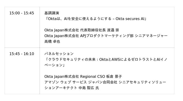 Okta Japan株式会社(本社: 東京都渋谷区、代表取締役社長:渡邉 崇)は、グローバルカンファレンス「Oktane」の日本特別版として、AI時代のアイデンティティとセキュリティのあり方をテーマにした対面イベント 「Oktane on the Road」 を東京(11月14日)と大阪(11月21日)で開催いたします。